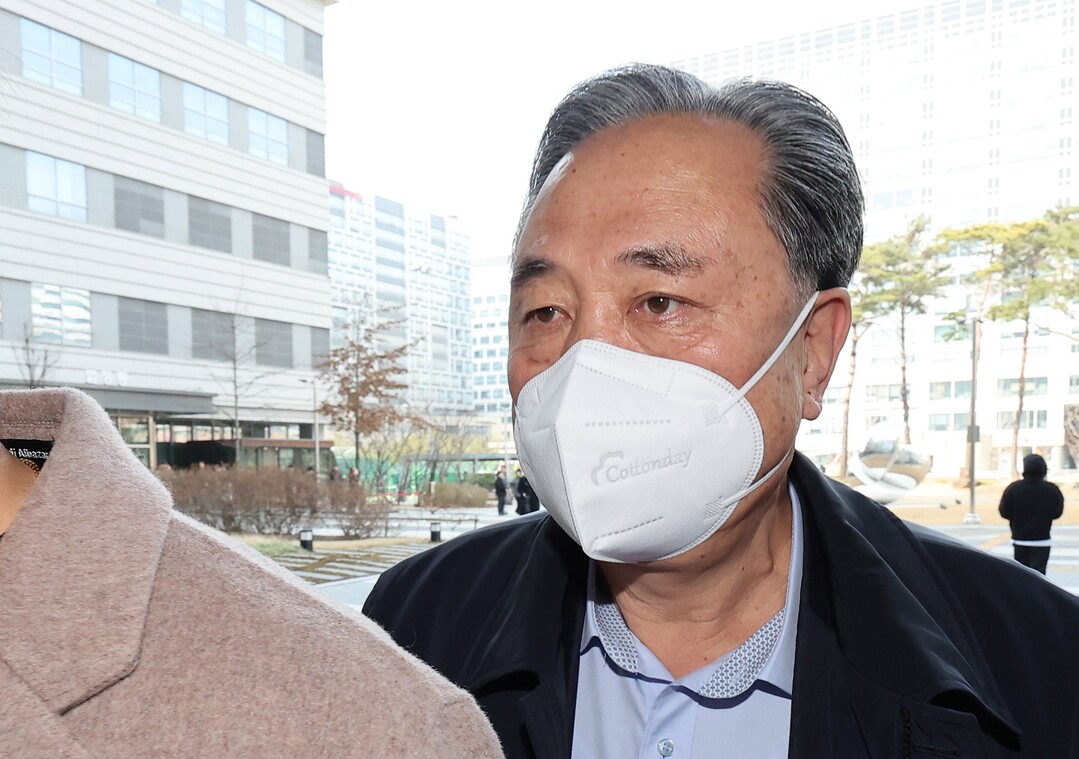 | 14일 박차훈 전 새마을금고 중앙회 회장이 서울 송파구 서울동부지방법원에서 열린 1심 선고 공판에 출석하고 있다. [사진=연합뉴스] |