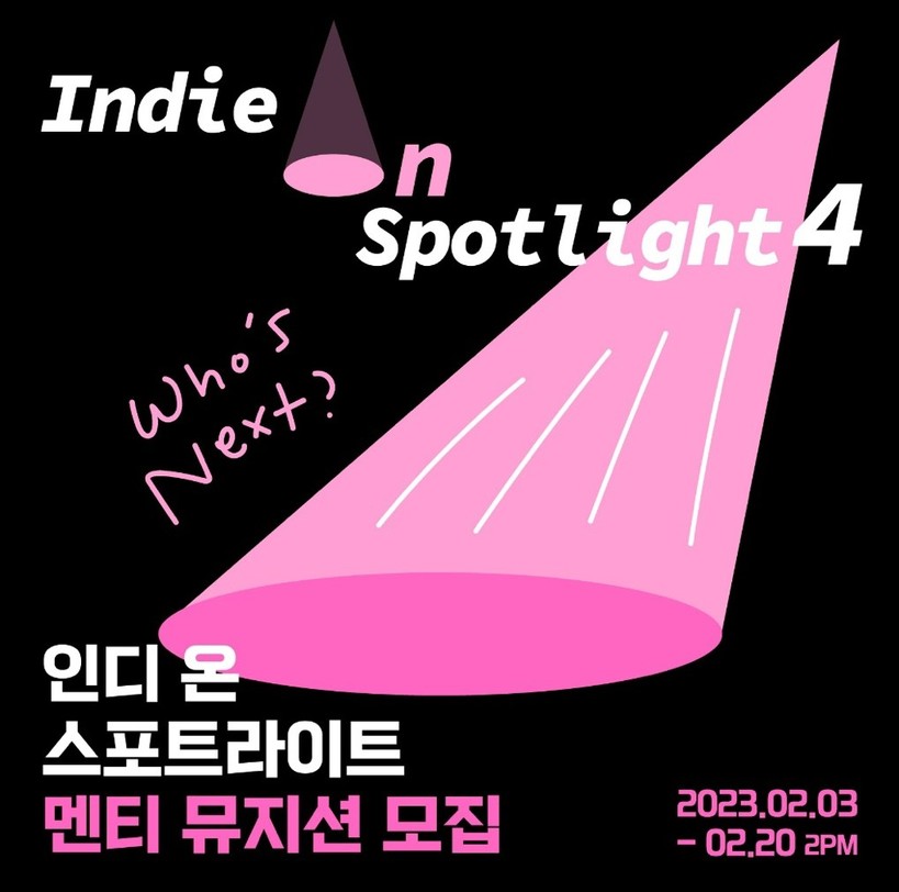 한편 ‘인디 온 스포트라이트’ 지난 3회 동안 올옷, 서울부인, From2020, 이사홀 등 7팀이 최종 선정돼 카더가든, 하림, 요조 등의 멘토링을 받았다. 이들은 ‘인디 온 스포트라이트’를 발판 삼아 현재 왕성한 음악활동을 펼치고 있다.
