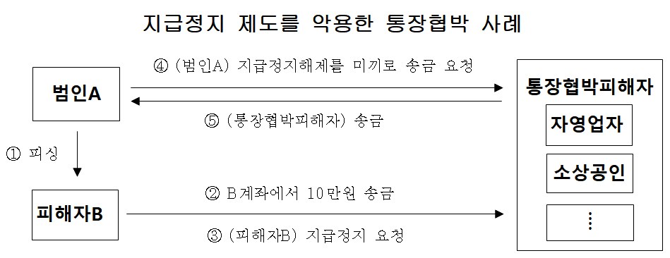 통장협박은 자영업자 등에게 소액을 송금한 후 계좌를 지급정지하고, 이를 빌미로 금전을 요구하는 행위다.