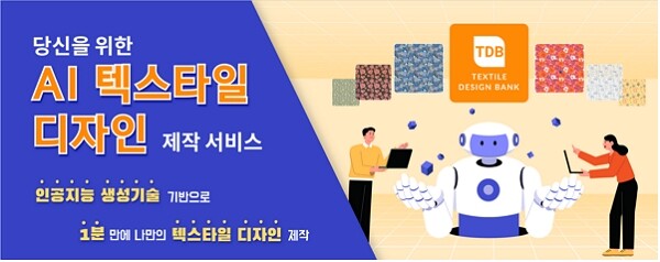 텍스타일디자인뱅크은 한국콘텐츠진흥원 뉴콘텐츠기업지원센터 입주 기업으로, AI 텍스타일 디자인 제작 서비스는 인공지능생성 기술을 활용해 1장의 레퍼런스 이미지를 업로드하면 1분 이내에 텍스타일 디자인 1리핏)을 제작해 준다.
