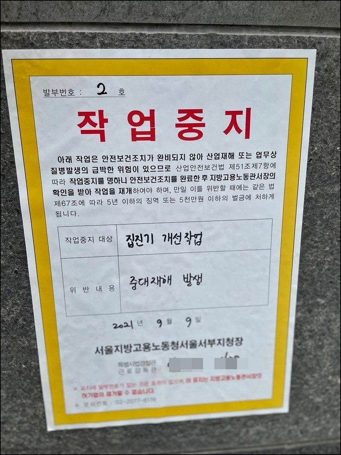 한편 집진기 설치공사 사고 발생 현장에는 A씨를 포함한 외주업체 직원들과 A씨의 아버지가 현장 책임자로 함께 있었던 것으로 알려졌다.