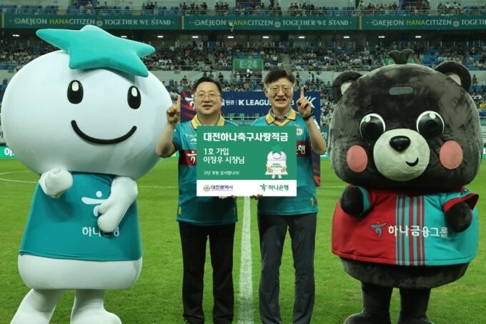 하나은행은 이번 적금 출시를 기념해 지난 22일 대전월드컵경기장에서 열린K리그1 홈경기에서 대전하나 축구사랑 적금 1호 가입 행사도 마련했다.