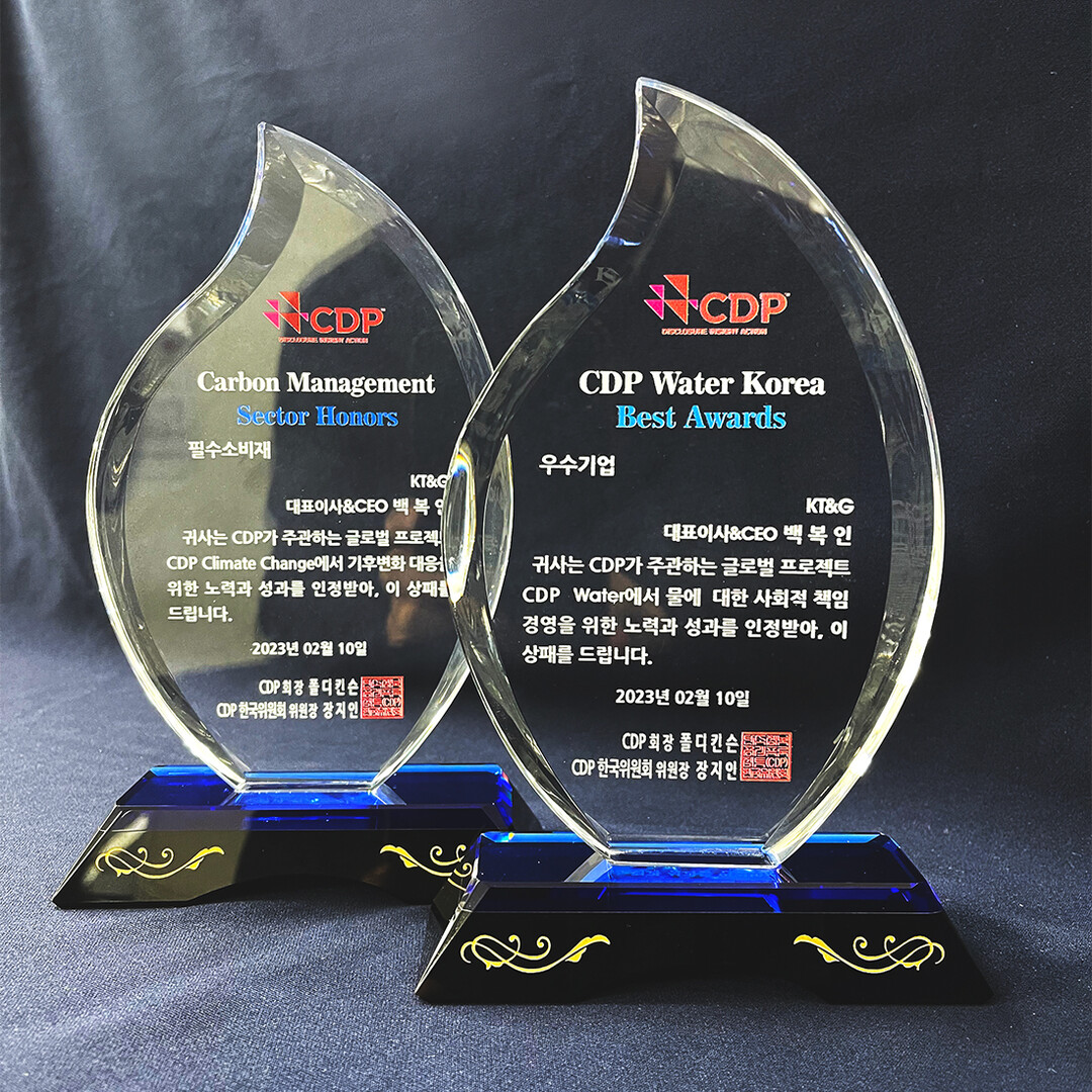 | KT&G에서 수상한 ‘2023 CDP Korea Awards’ 상패. [사진=KT&G] |