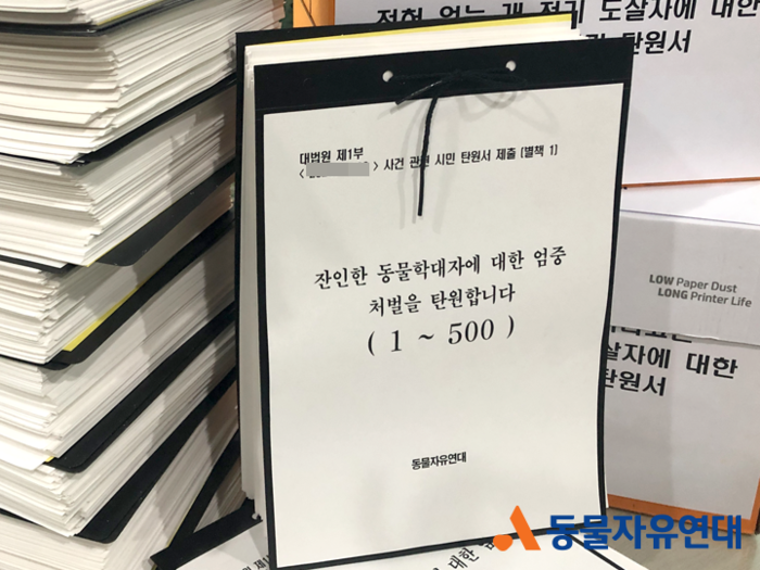 | ▲피고의 엄정한 처벌을 요구하는 시민들의 탄원서, 동물자유연대 |