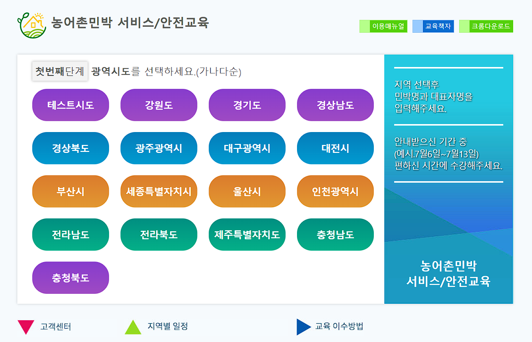 | 한국농어촌민박협회의 안전교육 사이트 화면. |