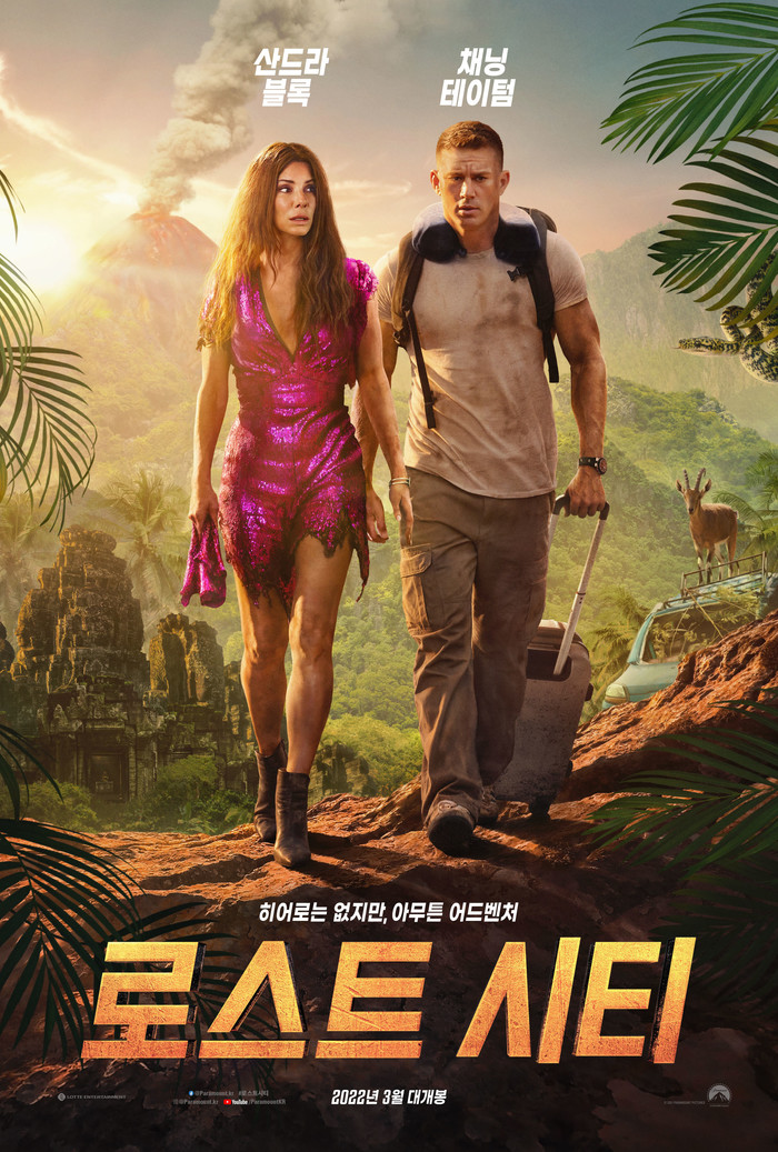2022년을 핫하게 뒤집어놓을 서바이벌 어드벤처 '로스트 시티'가 2022년 3월 개봉을 확정 짓고 지난 12/17(금) 티저 예고편을 최초 공개해 뜨거운 반응을 불러일으키고 있다. 영화 '로스트 시티'는 은둔 생활 중인 베스트셀러 로맨스 소설 작가 ‘로레타’가 그녀의 책 표지모델 ‘앨런’과 함께 북 투어를 돌던 와중에 납치되어 뜻밖의 정글 모험에 휘말리며 벌어지는 서바이벌 어드벤처.