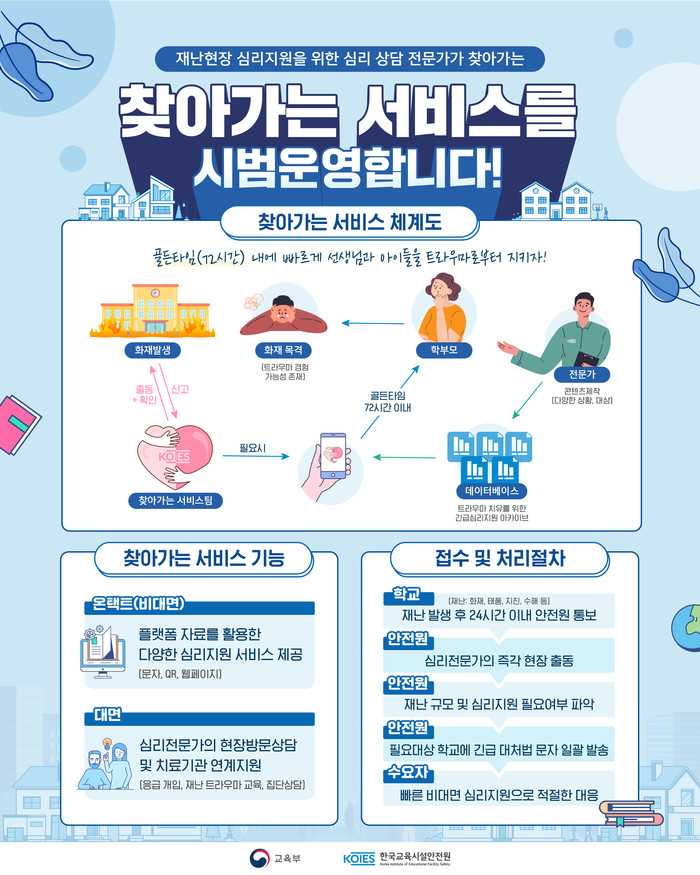 그러면서 “사후치료보다 교육시설안전사고에 대한 트라우마를 최소화 시킬 수 있는 사전교육과 트라우마 초동대응 콘텐츠를 보급해 안전하고 쾌적한 학교, 회복탄력성이 강화된학교가 될 수 있도록 지원할 것”이라고 덧붙였다.