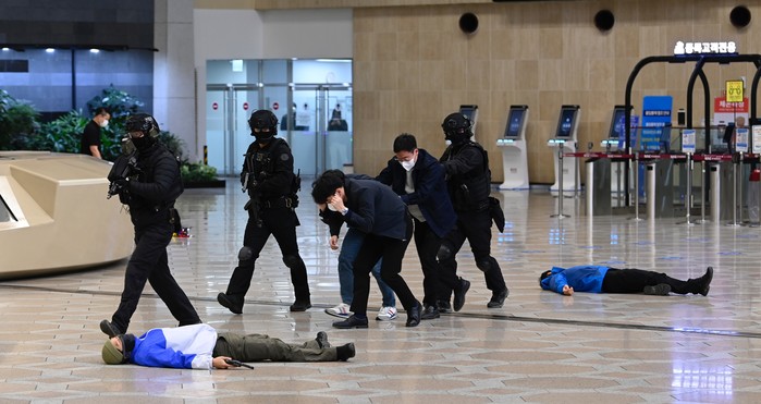 [하비엔=문기환 기자] 한국공항공사 서울지역본부(본부장 정덕교)는 16일, 김포국제공항 국제선 여객청사에서 유관기관과 합동으로 ‘2021년도 김포국제공항 대테러 종합훈련’을 실시했다.