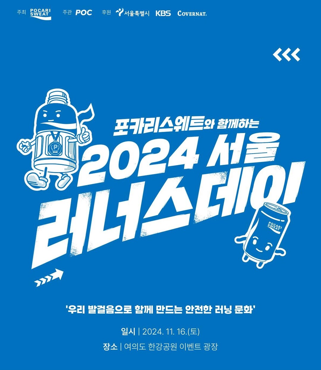 포카리스웨트가 주최하고 서울특별시, KBS, 패션 브랜드 커버낫이 후원하는 이번 행사는 안전한 러닝문화 형성 및 확대를 위해 기획된 행사로, 모바일 앱 ‘런플’을 통해 참가자를 모집한다.