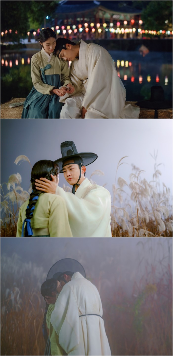 자신이 어사가 된 순간부터 모두 박승의 설계였다는 것을 알게 된 이언은 좌절했다. 그런 가운데 쓰라린 실패를 견디는 이언에게 작은 어깨를 기꺼이 내어주는 조이의 모습은 막다른 곳에서 서로의 쉼터가 되는 두 사람의 특별한 관계를 보여준다. 이어진 사진에서 두 사람의 분위기는 한층 더 짙어진다. 어느덧 실의를 벗어던진 이언의 얼굴은 새로운 의지로 빛난다. 서로를 바라보는 두 사람의 눈빛은 한없는 애정으로 일렁이고 있다. 각성의 눈물이 어린 시선과 함께 애틋한 손길로 조이를 어루만지는 이언. 뒤이어 더욱 밀착된 거리와 살며시 맞닿은 입술은 심박수를 수직 상승시킨다.
