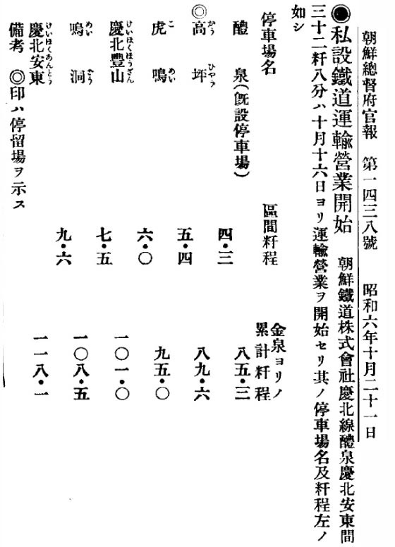 | ▲관보-예천 안동 간 영업개시 |
