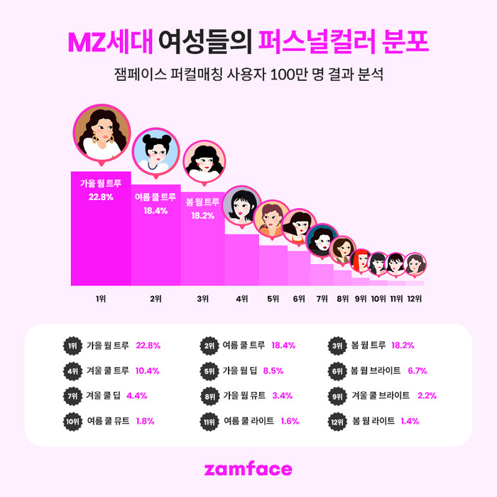MZ세대 여성의 퍼스널컬러 1위는 ‘가을 웜 트루’