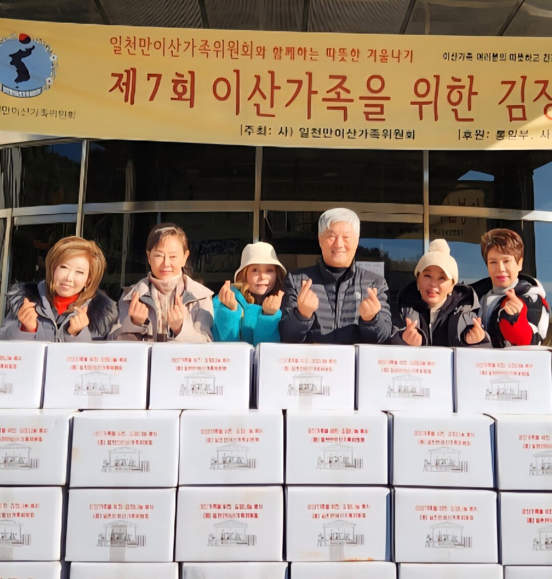 지난 11월 28일, 서울 종로구 이북오도청 앞마당에는 김장 배추 향이 구수하게 퍼졌다. (사)일천만이산가족위원회(장만순 위원장)가 주최한 ‘제7회 이산가족을 위한 김장 나눔 봉사’에 각계에서 모인 약 80여 명의 자원봉사자들이 한데 모여 손을 맞잡았다. 이 자리에는 영화배우 한지일 씨와 5명의 여성 연예인, 가수 정유경·유미·지은숙·나현아, 모델 진정아가 함께하며 특별한 의미를 더했다.