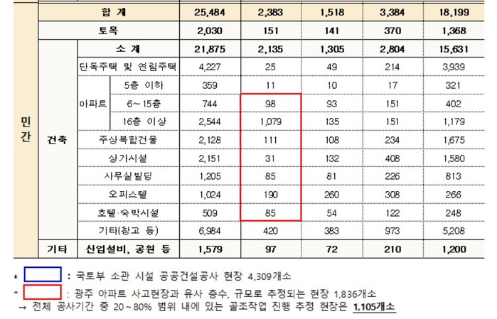 약 2만 5천여개 민간 공사현장에 대해서는 시공사·감리사를 중심으로 하는 자체 점검이 충실히 이행될 수 있도록 각 협회가 회원사들을 적극 관리하기로 했다.