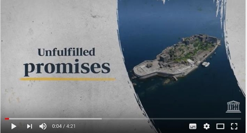 20일 유네스코 한국위원회 공식 홈페이지에 공개된 '지켜지지 않은 약속'(Unfulfilled promises)이라는 제목의 동영상은 총 4분 분량으로, 일본정부가 군함도 등 근대 산업시설의 세계문화유산 등재 당시 약속한 후속조치를 이행경과 보고서나 유산 현장에서 아직까지도 찾아볼 수 없다고 지적하면서 일본 정부가 약속을 이행할 것이라는 국제사회의 신뢰를 바탕으로 해당 유산이 등재됐던 만큼, 이제는 성실히 답해야 한다고 요구하고 있다.