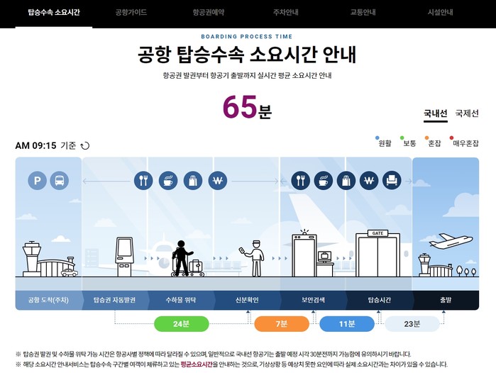 ‘공항 소요시간 안내서비스’는 김포·제주공항 홈페이지, 스마트공항가이드 앱을 통해 확인할 수 있다.