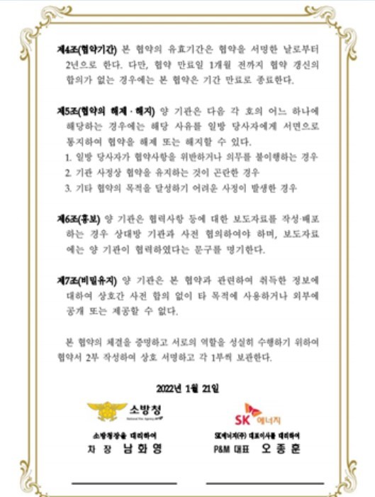 | ▲소방청-SK에너지(주) 업무협약 체결 전문 중 일부 |
