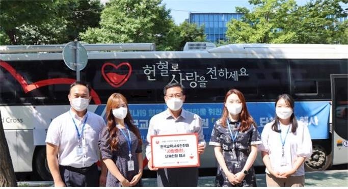 임직원 단체헌혈은 코로나19 방역수칙을 준수해 손장갑, 손소독제, 마스크 착용 등을 철저히 하였고, 헌혈버스 내 많은 사람이 모이지 않도록 4명씩 조를 나눠 순차적으로 진행됐다.