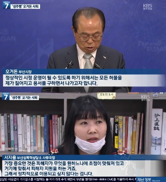 또한 오거돈 시장의 나이를 언급하며 "1948년 생이다. 48년 생이면 만으로 따져도 72세다. 왜 그러셨어요?라고 물었다. 이어 "73세 나이에 성추행으로 시장직을 물러나는 지금 심정이 어떠십니까, 부끄럽습니까"라는 질문을 던지며 비난했다.