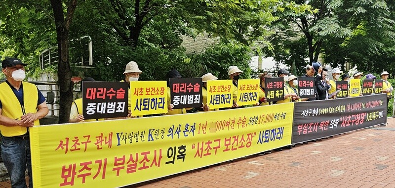 시민단체, 서초구보건소 앞 기자회견…보건감독 실효성 지적