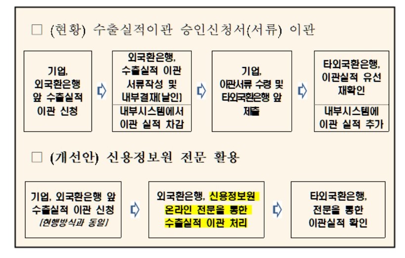 | ▲ 수출실적 이관 프로세스 개선안. |