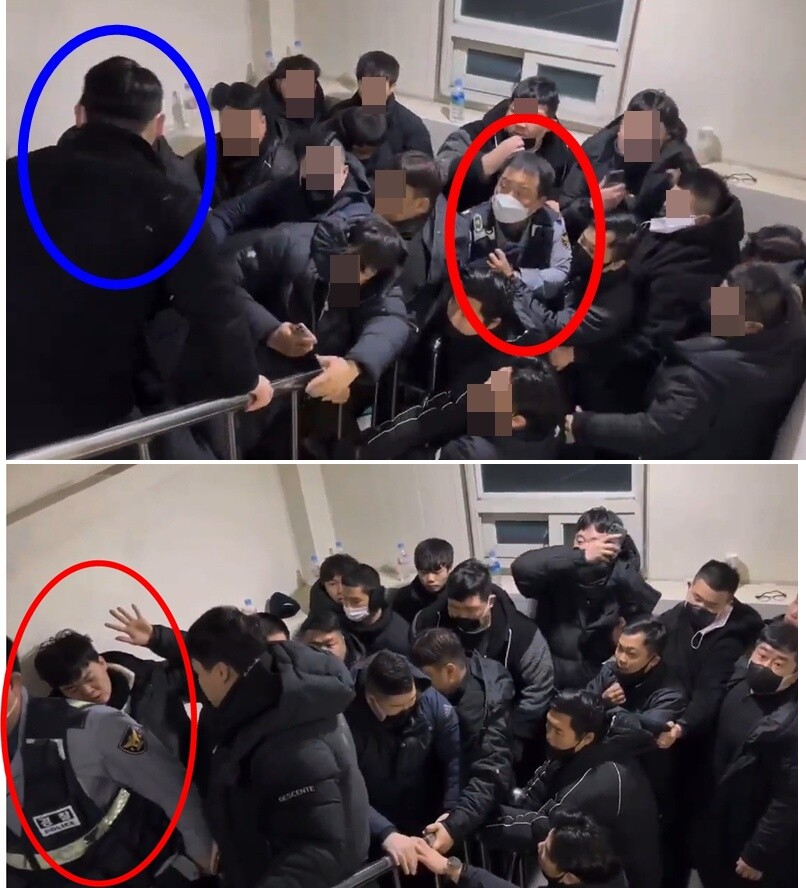 | △사진=부산의 한 재개발 조합에서 조합원들 간 다툼으로 공권력이 애를 먹고 있는 모습 [출처/ 제보관련 현장영상 캡쳐] |