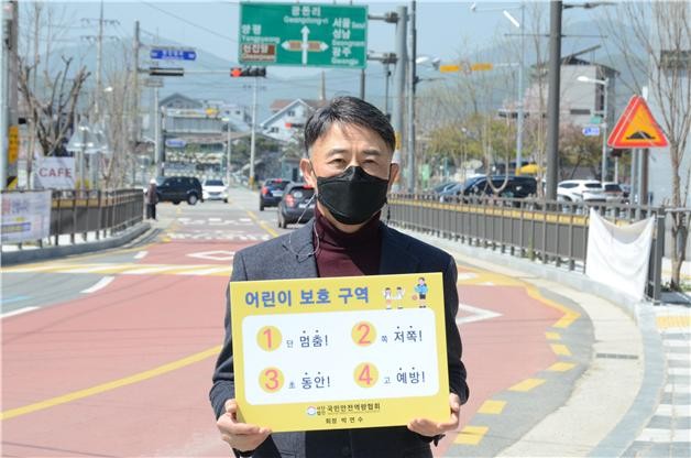 박연수 회장은 가천대학교 사회정책대학원 허 억 교수로 부터 참여요청을 받아 어린이 교통안전 릴레이 챌린지에 참여했으며, 지난 15일 13시부터 30분동안 경기도 광주시 퇴촌면 도수리에 있는 도수초등학교에서 어린이 교통안전 구호 ‘1단 멈춤!, 2쪽 저쪽!, 3초 동안!, 4고 예방!’ 피켓을 들고 캠페인 홍보를 진행했다.
