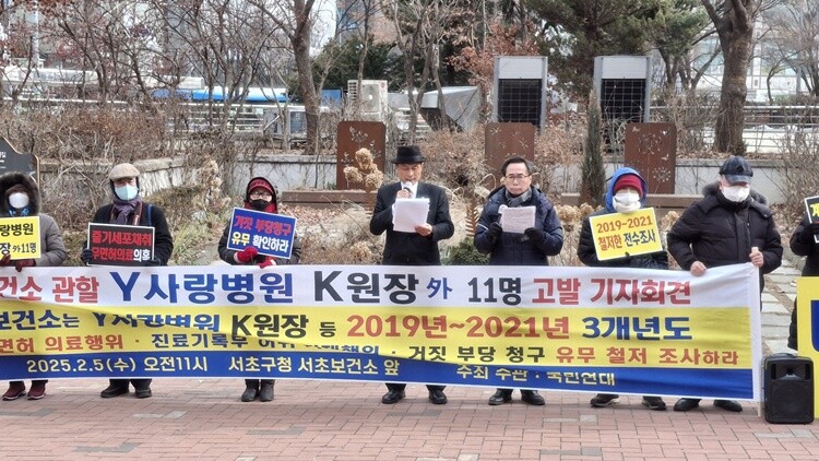 한편 이날 기자회견을 마친 시민단체는 Y병원의 소재한 서초구의 우00 보건소장과 의료지원과장, 의무팀장, 의무담당 주무관 등을 직무유기혐의로 서초경찰에 고발장을 제출했다.