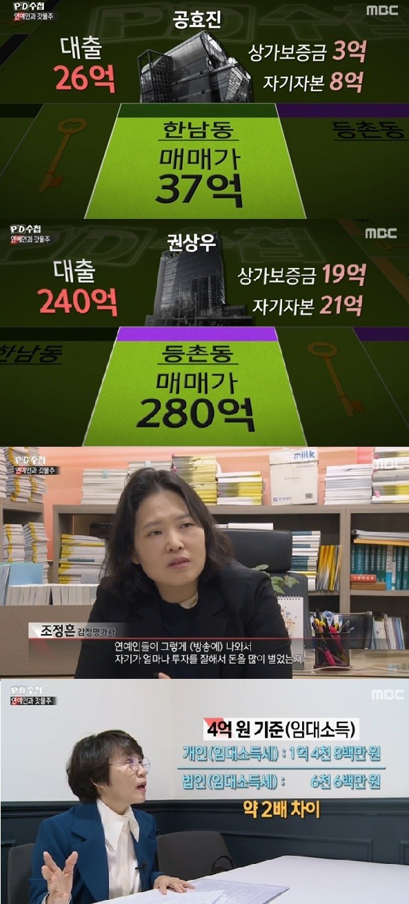 [하비엔=신유빈 기자] 'PD수첩'에서는 연예인들이 건물 매매로 시세차익을 내는 투자 방법을 보도했다.