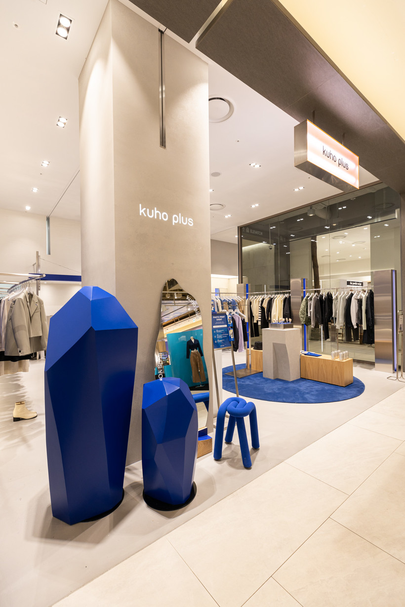 구호플러스의 첫 오프라인 매장인 여의도 더현대서울 매장은 ‘Carved Blue(조각된 블루)’가 콘셉트로, 브랜드가 추구하는 미니멀하고 입체적인 실루엣을 공간의 구조와 형태에 반영한 것이 특징이다. 여기에 구호플러스를 대표하는 블루컬러를 유니크한 포인트로 활용해 브랜드 감성을 표현했다.
