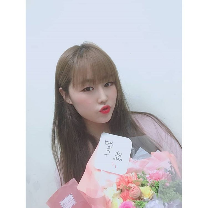 베이비소울은 핑크색 꽃다발을 들고 귀여운 표정을 지으며 팬들에게 근황을 올렸다.