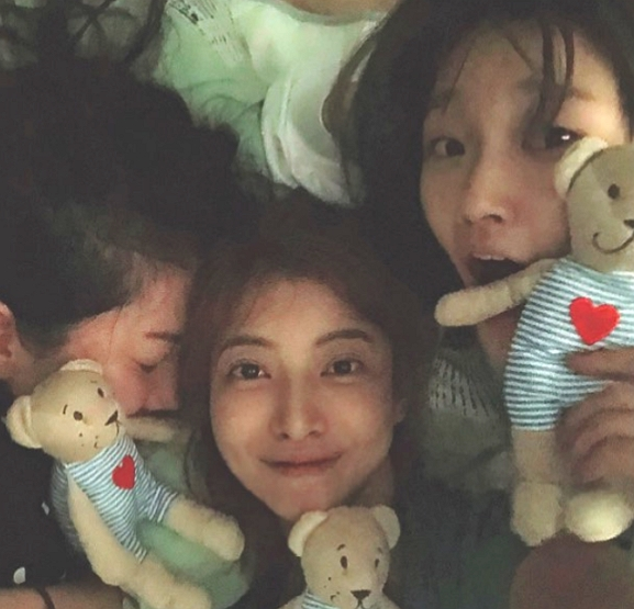 공개된 사진 속 세 사람은 민낯에 카메라를 바라보며 포즈를 취하고 있다. 화장기 없는 수수한 민낯이 보는 이들의 감탄을 자아낸다.