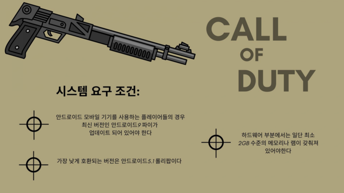 이번 모바일 버전은 안드로이드와 iOS에서 사용가능하지만, 이들 플랫폼으로 구동되는 모든 모델에서 다 작동되는 것은 아니다. 또한 두 플랫폼이라도 게임이 제대로 작동되기 위해서는 몇 가지 특정의 시스템 요구사항들이 존재한다. 이와 관련 모바일용 COD 게임의 필수적인 요구 조건을 살펴보자.
