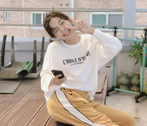 설인아는 노란 운동복에 흰 티를 입은 편한 옷차림에도 귀여운 외모를 자랑했다.