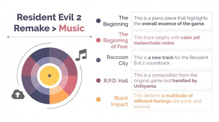 지난 1998년 ‘레지던트 이블’로도 알려진 ‘바이오하자드2’가 출시된 이후 이 게임은 지금까지도 전 세계적으로 큰 인기를 끌고 있으며 다수의 속편과 리메이크가 만들어졌다. 제작사인 캡콤은 적절한 게임 음악으로 공포감을 더했다.