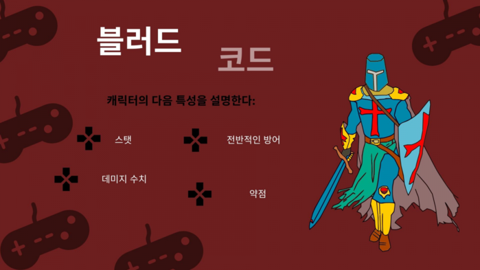 가령 멜리(근접전) 블러드 코드는 다른 사람들이 적을 빠르게 제거하는 동안 피해를 흡수하는 탱크를 만들 수 있다. 혹은 마법을 좋아한다면 동맹을 치유하고 지원하는 것과 적을 공격하고 약화시킬 수 있는 옵션 중 하나를 선택하는 것이 바람직하다.