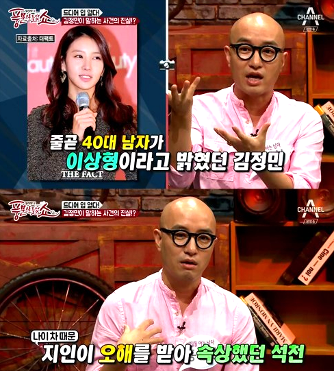 그러자 홍석천은 "김정민은 원래부터 40대의 남자를 만나는 게 이상형이라고 했다. 나이 차이를 가지고 욕을 하는 분들을 보면 굉장히 마음이 안 좋다"며 "욕을 먹는 꽃뱀, 스폰서 이런 생각이 있으면 방송하는 연예인 입장에서는 자기가 남자친구가 있다고 절대 얘기 안 한다. 그런데 김정민은 남자친구가 있다고 늘 얘기하고 다녔다"며 속상한 마음을 토로했다.