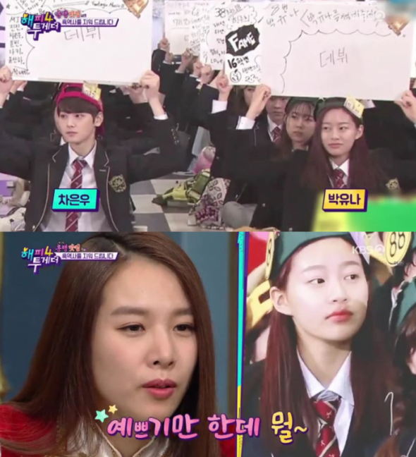 앞서 지난 3월 ‘해피투게더4’에 출연한 박유나는 고등학교 동창인 차은우와 '도전 골든벨'에 출연한 사연을 전했다. 차은우와 박유나는 한림연예예술고등학교 동창이다.