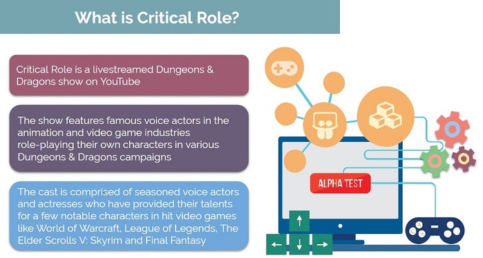 크리티컬 롤은 유튜브에서 생방송으로 진행되는 '던전 앤 드래곤' 쇼다. 다수의 성우가 한 팀으로 모여 던전 마스터 한 명과 여러 명의 플레이어로 그룹을 짜고 웹시리즈를 진행한다. 성우들은 비디오 게임인 '던전 앤 드래곤' 시리즈에서 실제로 맡았던 캐릭터를 그대로 연기하기 때문에 상당히 실감 나는 웹시리즈를 만들어냈다.