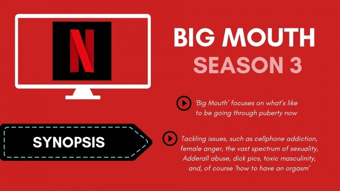 넷플릭스의 찬사를 받은 성인 애니메이션 시리즈 '빅 마우스(Big Mouth)'가 전보다 더 강력한 소재로 돌아왔다. '빅 마우스'는 사춘기에 누구나 겪을 수 있는 미묘한 경험을 그리고 등장인물들이 성적 취향을 찾는 여정을 다룬다. 지난 4일부터 방영을 시작한 ‘빅 마우스’ 시즌3. 시청하기 전 예고편과 팬들의 예상도 점검해보자.