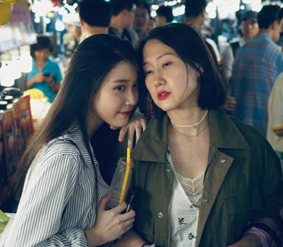 사진 속 아이유는 배해선과 다정하게 붙어 포즈를 취하고 있다. 두 사람은 최근 종영한 드라마 '호텔델루나'에서 함께 호흡을 맞춘 바 있다.