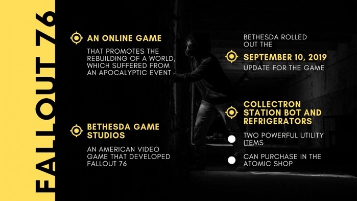 지난 2019년 9월 10일, 베데스다는 폴아웃 76에 최신 업데이트를 진행했다. 이 패치에는 두 가지 강력한 유틸리티 아이템이 포함된다. 바로 냉장고와 정크봇이다. 이 아이템은 게임 내 아톰샵에서 판매되며, 플레이어들은 아톰 포인트를 모으거나 '현질'을 해야 한다.