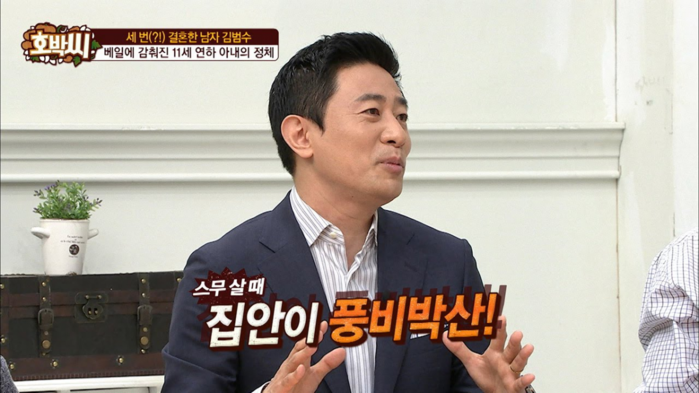 이에 김범수는 지난 TV조선 '호박씨'에서 이는 거짓이라며 “20살 때까지 집안에 여유가 있었다고 하는데 20살 이후는 집안이 풍비박산이 나서 21살 때부터 아르바이트를 해서 용돈을 벌어야 했다고 하더라”고 전했다.