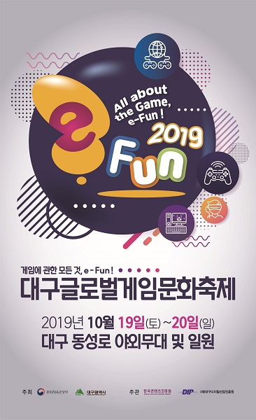 한편 올해 19회째를 맞는 ‘대구글로벌게임문화축제 e-Fun 2019’는 문화체육관광부와 대구광역시가 공동 주최하고 한국콘텐츠진흥원, 대구디지털산업진흥원이 공동 주관한다.