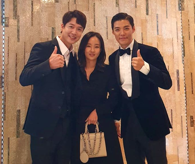 사진 속 조현재는 아내 박민정과 나란히 서서 강남과 포즈를 취하고 있다. 세 사람의 훈훈한 미모가 보는 이들의 감탄을 자아낸다.