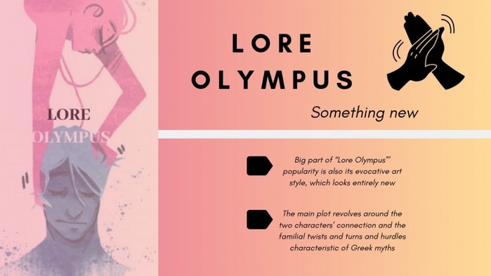 ‘그리스 신화’라는 대중적인 스토리의 ‘로어 올림푸스’가 애니메이션으로도 제작됐다. ‘로어 올림푸스(Lore Olympus)’는 네이버웹툰의 글로벌 서비스인 라인 웹툰에서 가장 인기가 많은 작품 중 하나다. 로맨스 장르에 속하는 이 웹툰은 두터운 독자층을 보유하고 있으며 텀블러나 트위터 같은 소셜미디어에서 널리 회자되고 있다.