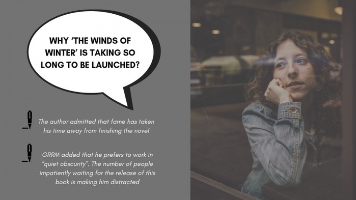마틴은 최근 인터뷰에서 책이 나오기까지 이렇게 오랜 시간이 걸리는 이유에 대해 설명했다. 그는 자신이 유명세를 타면서 책을 집필할 시간이 현저히 줄어들었다고 말했다.