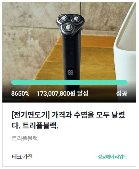 이처럼트리플블랙의전기면도기가 SNS 대란템을등극할수있었던데에는제품의품질과함께새로운판매방식이주효한것으로분석됐다.