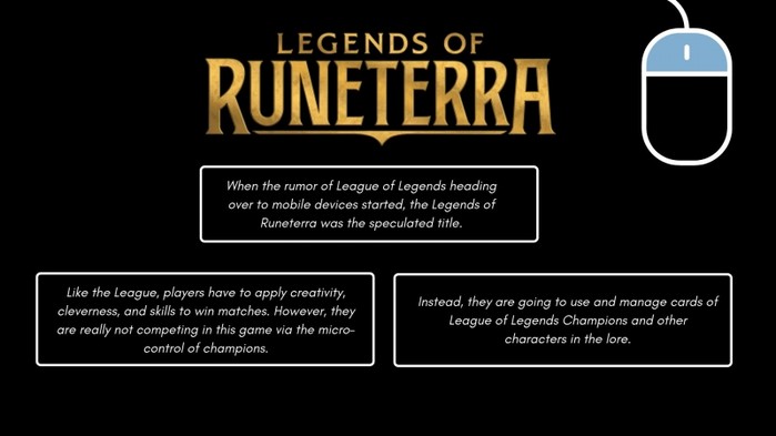 라이엇 게임즈는 얼마 전 롤의 10주년을 축하하며 예정된 계획을 발표했고, 그중 하나가 신작 게임인 '레전드 오브 룬테라'였다. 플레이어는 이기기 위해 창의력, 영리함, 기술 등을 적절하게 활용해야 한다. 하지만 이 게임에서는 플레이어가 직접 싸움을 진행하지 않는다.