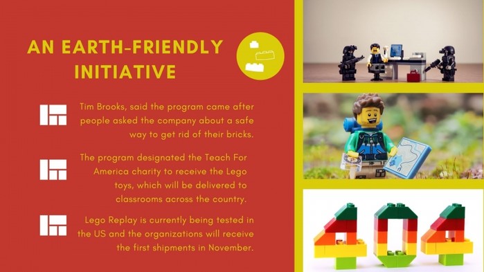 레고 리플레이 프로그램은 현재 미국에서 시범 운영 중이며 11월에 첫 번째 기부 배송을 받을 예정이다. 일단 내년 봄까지 프로그램이 운영되고 성공적인 결과가 나온다면 다른 나라로 확대될 수 있다.